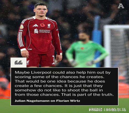 换而言之,暂时没有下课危机的利物浦主帅还会将信任票投给自家的7号。有意思的是,德国主帅纳格尔斯曼则用转移法为弟子打气:“维尔茨创造了一些机会,只是他的队友似乎不太愿意把这些机会转化为进球。”