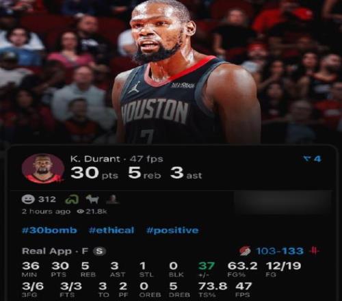 最后就是杜兰特,在对阵开拓者的比赛中,杜兰特轻松贡献30分5篮板3助攻,相较于快船的缺兵少将,火箭阵容齐整,哈登不用像哈登那样一个人扛起球队,在三人中,杜兰特是相对轻松的。